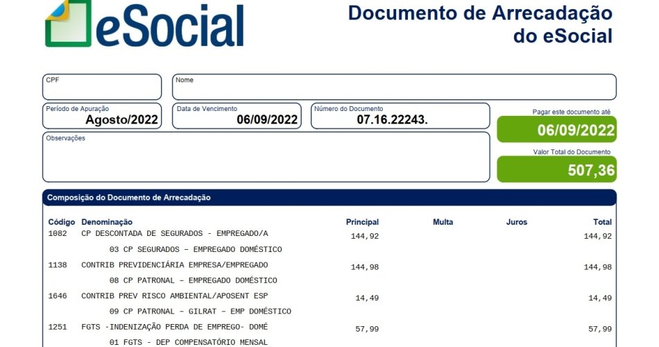 O Simples Doméstico assegura o recolhimento mensal, mediante documento único de arrecadação, dos seguintes valores: