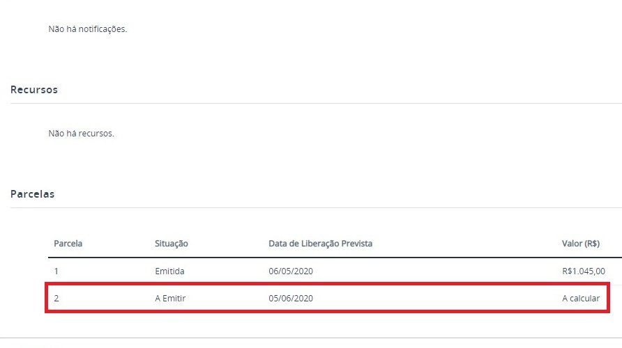 Passo 5: a parcela referente à prorrogação automaticamente é lançada.