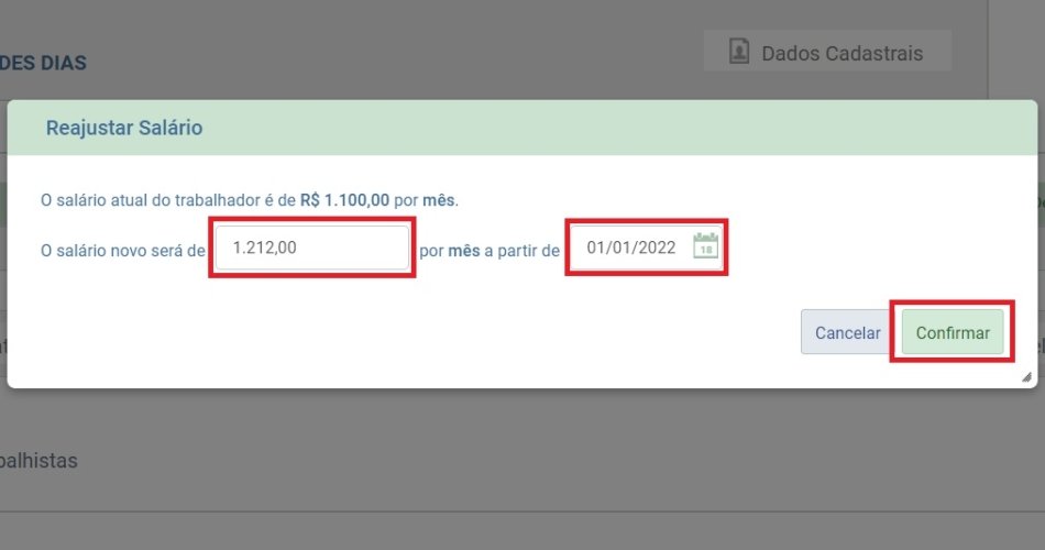 Passo 4: complete o campo com o novo salário e a data do reajuste.